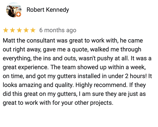 Having gutter guards installed is a wise investment that offers numerous benefits, including clog prevention, reduced maintenance, protection against water damage, and extended gutter lifespan. It helps maintain the integrity of your home, ensures proper water drainage, and provides peace of mind for you and your family, knowing that your gutters are well-protected and functioning efficiently.